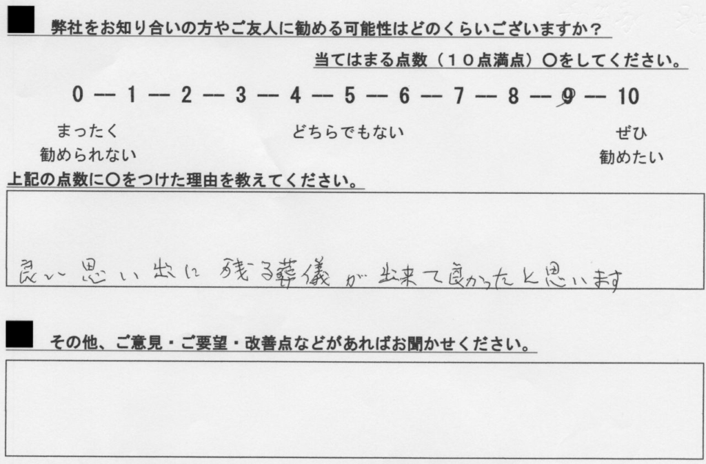 ご家族様のご希望や故人様のご希望を丁寧にお伺いする事が出来るため、満足度の高いお葬式を行うことができます。私たちスタッフが世界に一つだけのお別れの刻をご提案いたします。