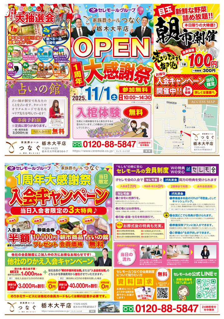 ■会費:ガラポン大抽選会無料、入館体験無料、占いの館(当日入会の方無料、一般・既存会員の方3,000円/1回)、